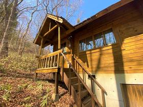 抜け感のある眺望が魅力的!すぐに使えるコンパクトなログハウスです。